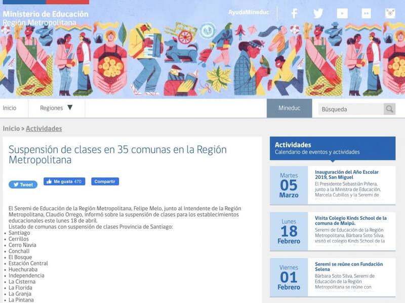 Durante las últimas horas un comunicado del Ministerio de Educación sobre una supuesta suspensión de las clases en Santiago para este lunes 18 de abril se ha viralizado en redes.