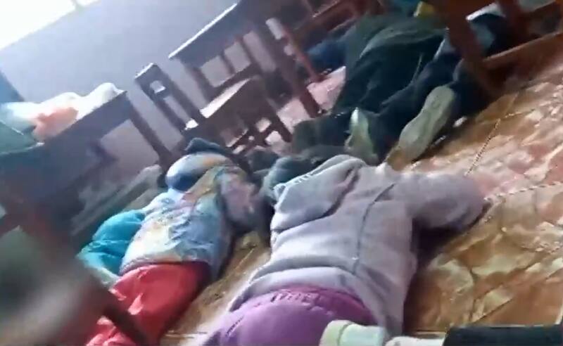 En el video, un grupo de educadoras del jardín infantil Nuestra Señora de La Victoria, le piden a los niños y niñas presentes que se tiren al suelo para evitar una posible tragedia debido a los disparos.