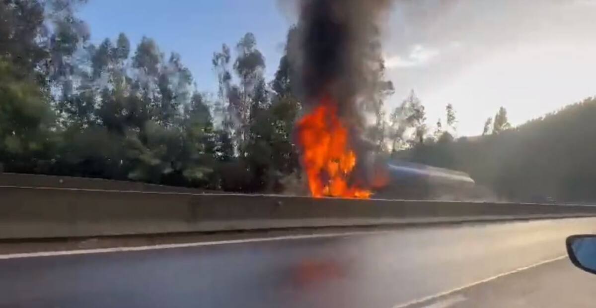 De acuerdo a registros audiovisuales compartidos en Twitter por los usuarios @Aprachile y @Ernesto69ulises, el fuego afectó la cabina del vehículo de transporte. El hecho ocasionó una gran congestión en la Ruta 160 y una enorme columna de humo que se expandió por la zona.