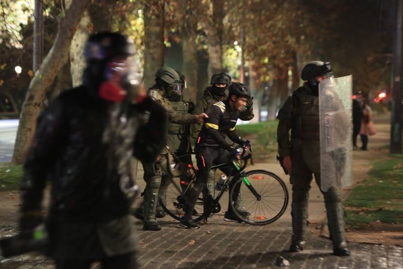 Durante la noche de este viernes un ciclista estuvo a punto de caer al río Mapocho luego de ser empujado por un carabinero, hecho ocurrido en el marco de las manifestaciones registradas en Plaza Baquedano.