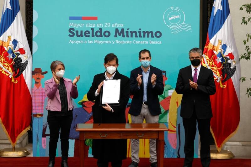 El Presidente Gabriel Boric promulgó desde el Palacio de La Moneda la ley que incrementa el sueldo mínimo a $380 mil de forma retroactiva, para que desde el 1 de agosto alcance los $400 mil, y que además otorga una subvención a las pequeñas y medianas empresas.