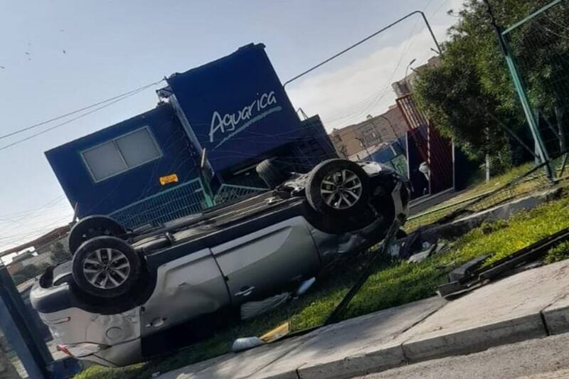 El pasado martes 14 de junio las cámaras de seguridad de la empresa de agua potable, Aguarica, registraron el volcamiento de un auto que chocó contra el cierre perimetral de la empresa, en Arica.