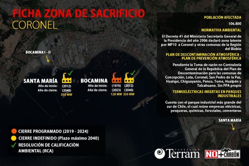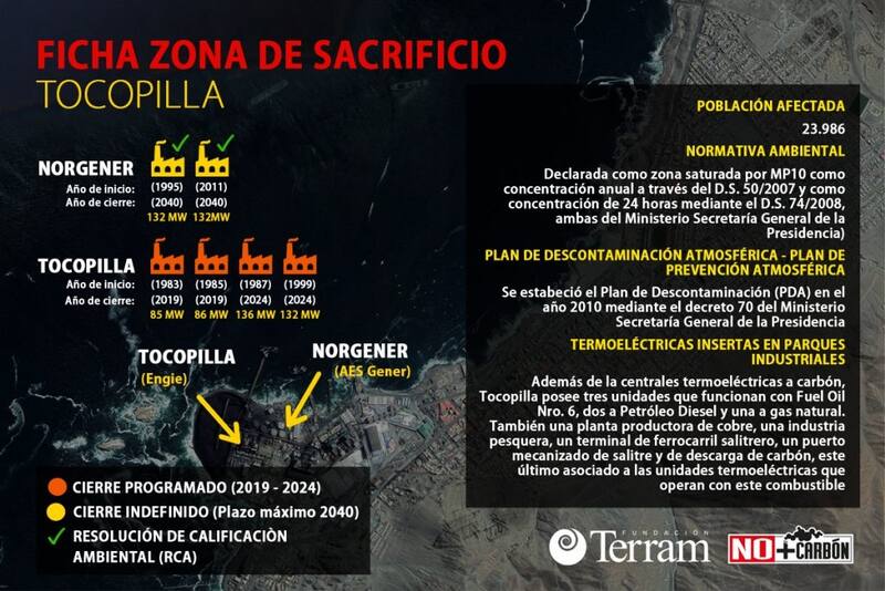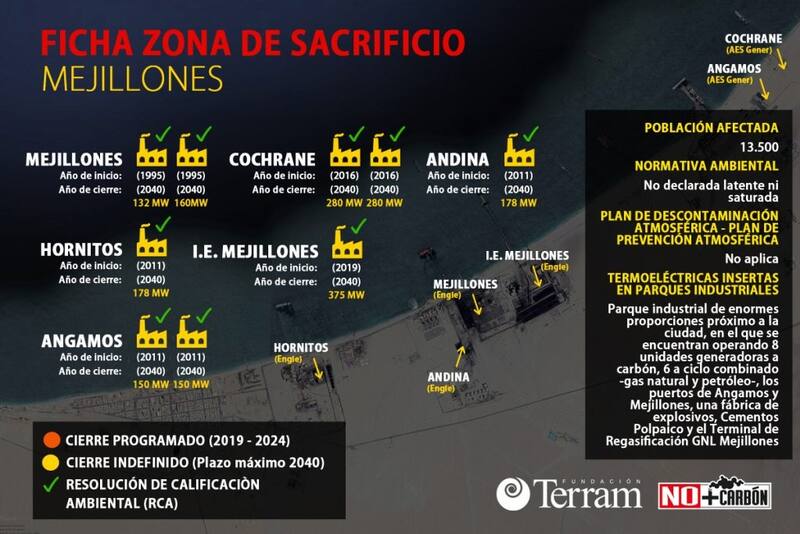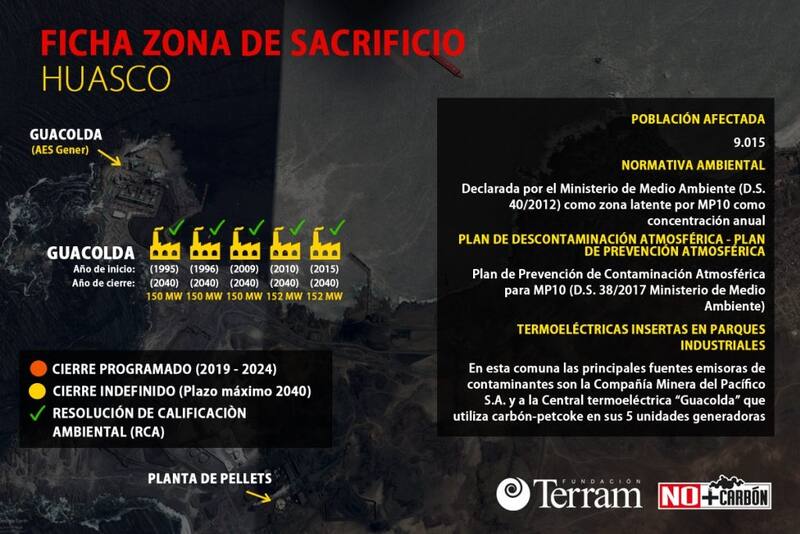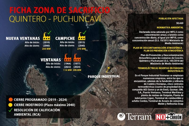 De acuerdo a la Fundación Terram, las zonas de sacrificio son sectores geográficos de alta concentración masiva de empresas contaminantes, sobre todo carbón, lugares en los que se ha priorizado el establecimiento de polos industriales para el desarrollo económico del país, por sobre el bienestar de las personas y el medioambiente.