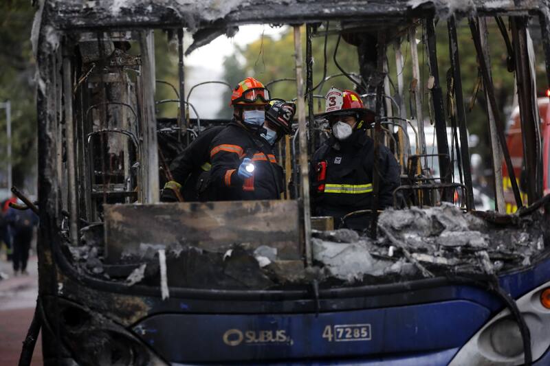 Personal de Carabineros se encuentra investigando la quema de un bus del transporte público ocurrido en la noche del lunes en la comuna de Pedro Aguirre Cerda, Región Metropolitana.