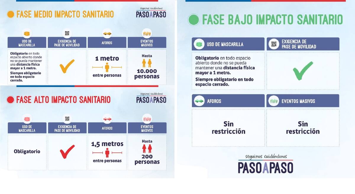 Cabe destacar que estos cambios se mantendrán hasta que las autoridades lo estimen necesario, mientras que los habitantes de cada comuna deberán adaptarse a los aforos y restricciones del nuevo Plan Paso a Paso. Revisa aquí en qué Fase del Plan Paso a paso está tu comuna.
