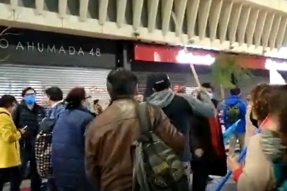 Vendedores ambulantes amenazaron con palos, fierros y empujones a adherentes del Apruebo que estaban realizando campaña por esta opción en el Paseo Ahumada, en el centro de Santiago, durante la tarde del jueves.