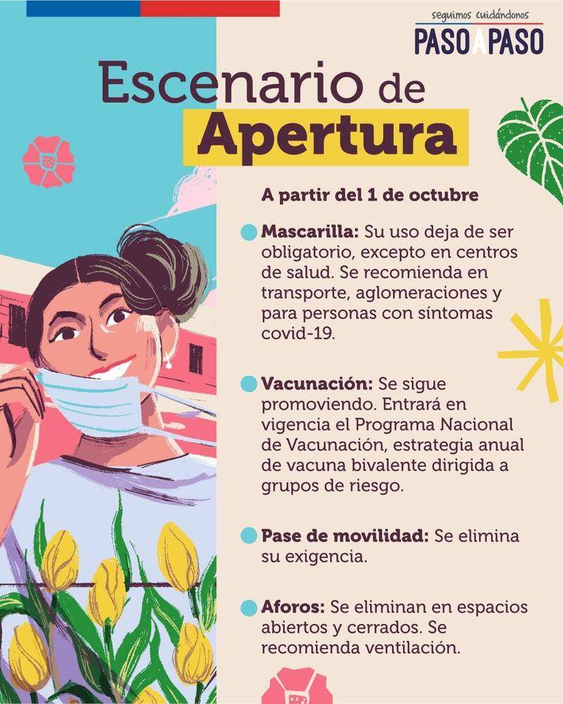 A partir de este sábado 1 de octubre, el uso de la mascarilla deja de ser obligatorio y pasa a ser un insumo recomendado para utilizar en el transporte público y espacios de aglomeración.
