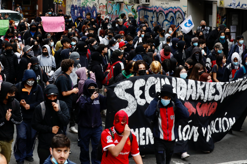Se espera que el contingente de estudiantes avance hasta el edificio del Congreso Nacional a medida que se vayan sumando todos los secundarios al grupo que se encuentra en la plaza.