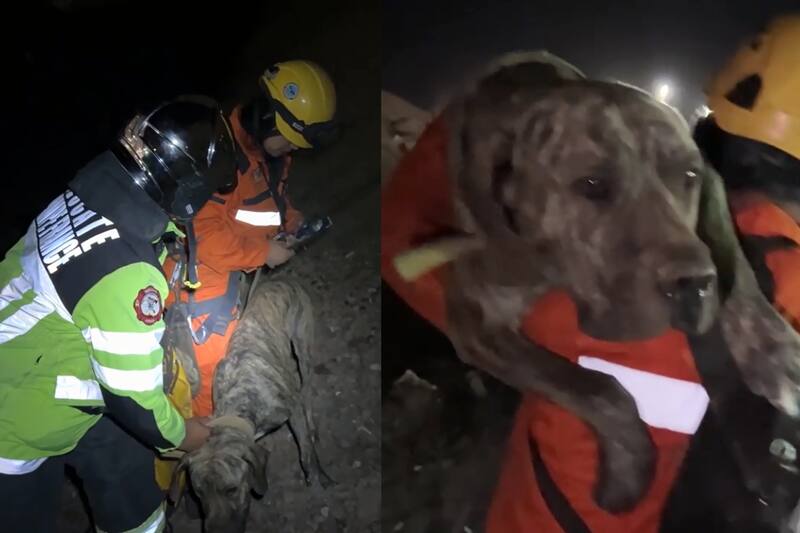 Las imágenes del rescate fueron captadas y compartidas por el medio anteriormente mencionado, las cuales muestran la labor realizada por los voluntarios para lograr sacar a salvo al perro atrapado.