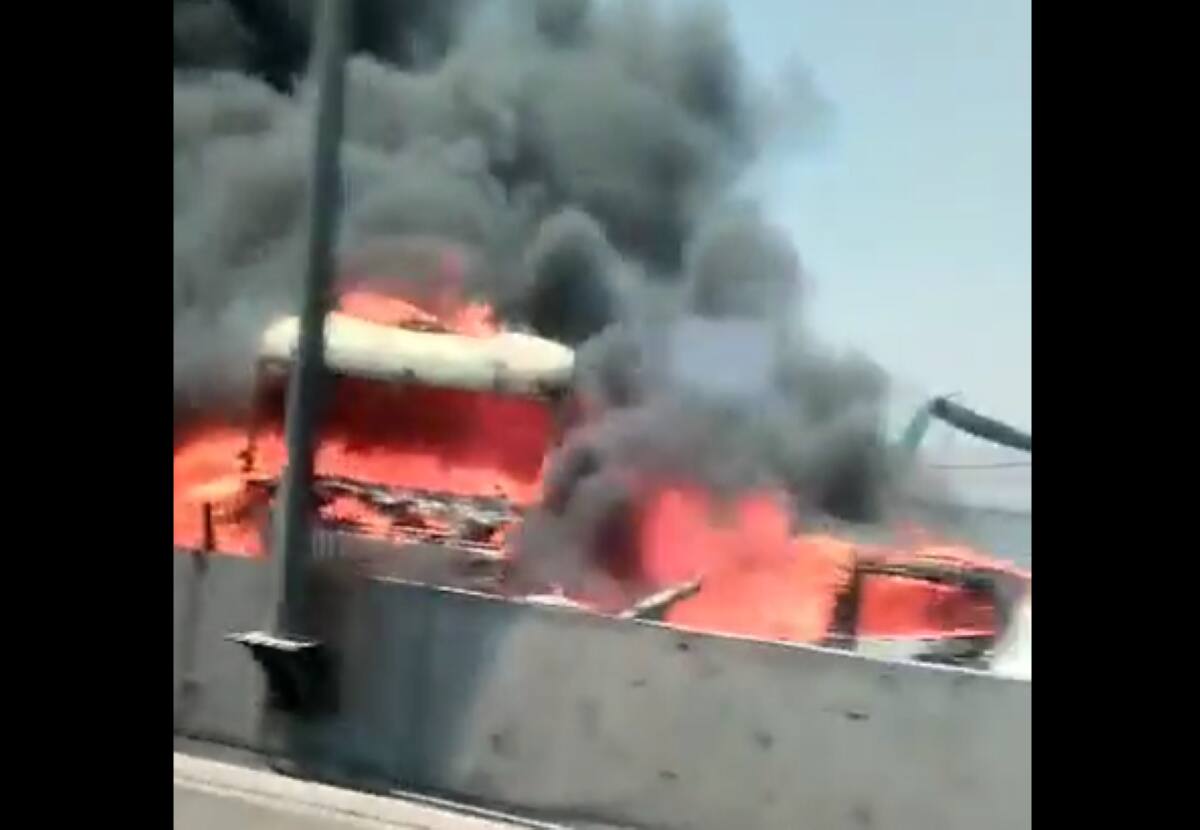La colisión provocó que los dos vehículos involucrados terminaran incendiados, por lo que se estableció el corte total del tránsito en el kilómetro 11,4, desviado a la caletera.