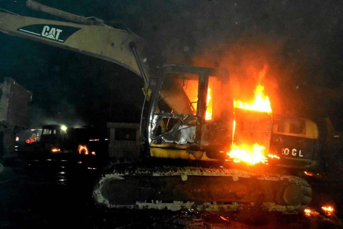 Los individuos incendiaron una "dependencia destinada a oficina, una maquina retroexcavadora, una camioneta propiedad del dueño de la planta, un vehículo menor, un camión utilizado al interior de la faena y un vehículo particular", explicó el coronel de Carabineros, Álvaro Martínez.