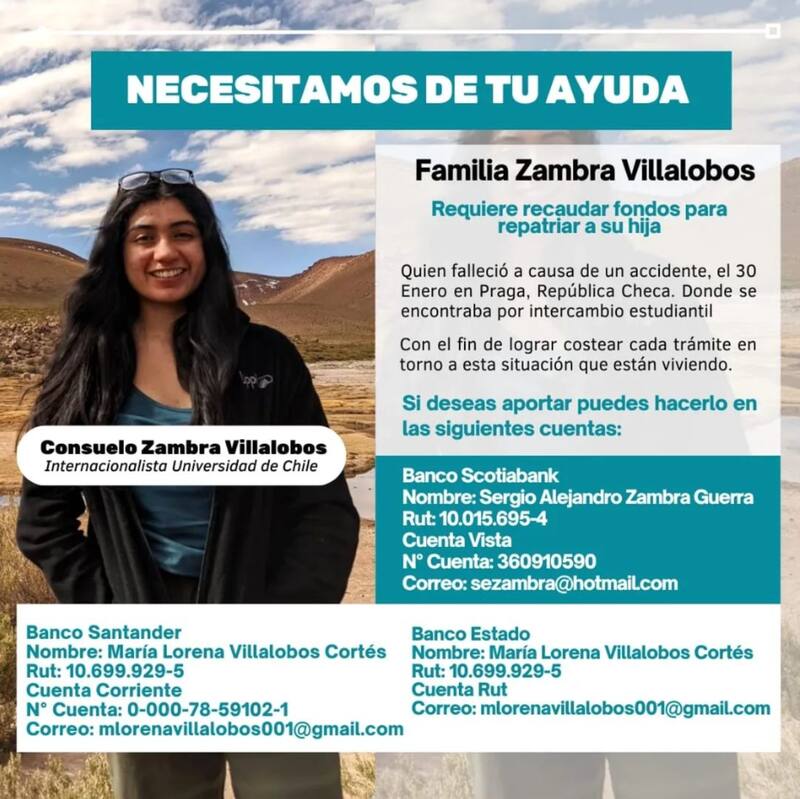 En un confuso accidente murió la chilena Consuelo Zambra en Praga, República Checa, país europeo en el que se encontraba por un intercambio de estudios.