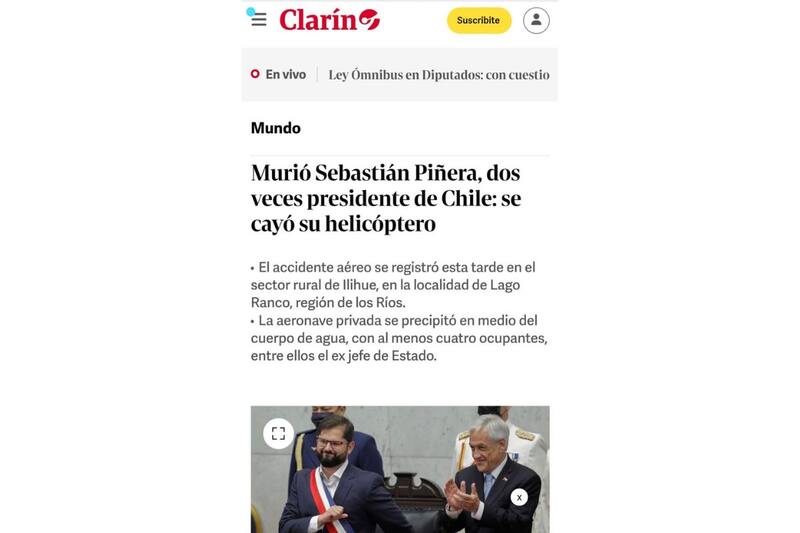 Acá te mostramos las reacciones de distintos medios nacionales y internacionales, a esta lamentable noticia del fallecimiento de Sebastián Piñera.
