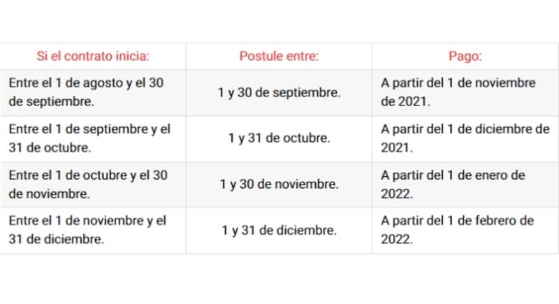A su vez, las solicitudes realizadas durante octubre, y las que se realicen durante noviembre y diciembre, contemplan depósitos según el siguiente calendario: