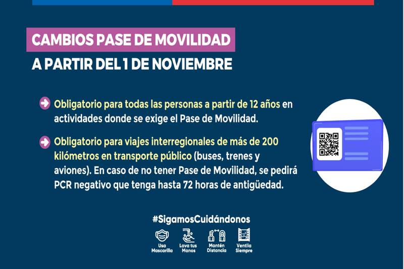 - Todas las personas mayores de 12 años deberán portar su Pase de Movilidad activo.