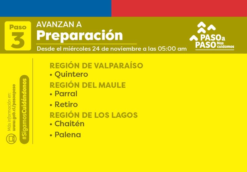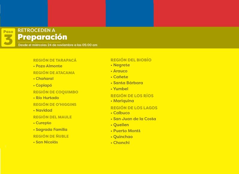 Este miércoles 24 de noviembre comenzaron a regir los nuevos cambios de fase a nivel comunal en el Plan Paso a Paso que anunció el Ministerio de Salud debido a la situación de la pandemia por Covid 19 en Chile.
