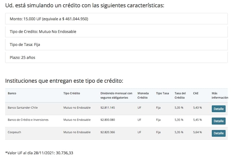 La herramienta está habilitada por la Comisión para el Mercado Financiero (CMF) y permite cotizar y comparar las tasas y el valor del dividiendo. Esta opción tiene habilitada los préstamos para la vivienda de hasta 20 mil UF y contempla la modalidad de crédito hipotecario más utilizada, que es mutuo hipotecario no endosables en UF y a tasa fija.