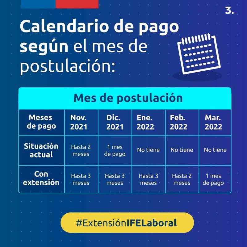 El IFE Laboral será extendido por los meses de enero, febrero y marzo de 2022. Esto permitirá que más trabajadores puedan acceder al subsidio. Esto se reflejará de la siguiente forma en el calendario de pagos: