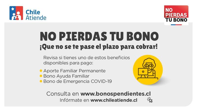 La red de multiservicios del Estado, Chile Atiende, continúa con su campaña "No pierdas tu Bono", mediante la cual se puede revisar si se tiene beneficios pendientes de cobro sólo consultando con el Rut y la fecha de nacimiento de la persona.