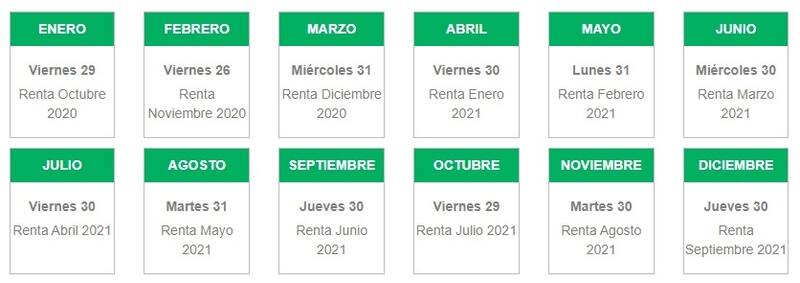 El primer pago se realiza cuatro meses después de la fecha de postulación y siempre con tres meses de desfase. Por ejemplo, en febrero de 2021 se pagará el beneficio de acuerdo a las rentas percibidas en noviembre de 2020. Además, se hace el último día hábil de cada mes, a excepción de septiembre y diciembre.