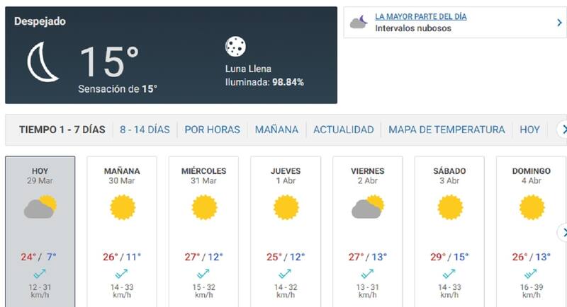Para el resto de la semana, las condiciones se mantendrán en similar tónica, registrando la máxima de la semana el próximo sábado con 29°.