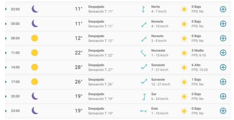 El día dará inicio con apenas 12° a eso de las 8:00 horas, pero ya a las 11:00 el cielo estará totalmente despejado y ya con 22 grados. La máxima se dejará sentir a las 14:00 horas con 28°, firmando lo que será una nueva ola de calor.