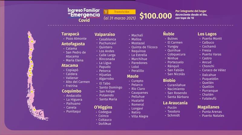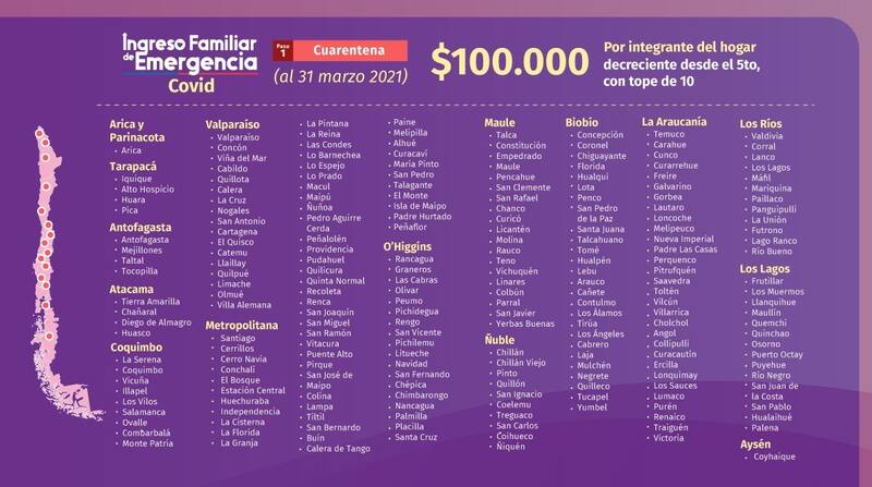 Dirigido a familias que se han visto golpeadas por la pandemia del coronavirus COVID-19, los IFE y Bono COVID entregan aportes de hasta 100 mil pesos por beneficiario, aumentando su radio de cobertura para el 80% de la población más vulnerable, de acuerdo al Registro Social de Hogares (RSH).