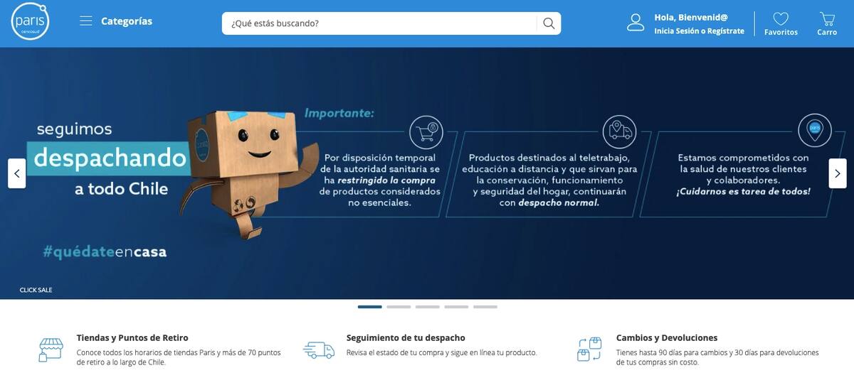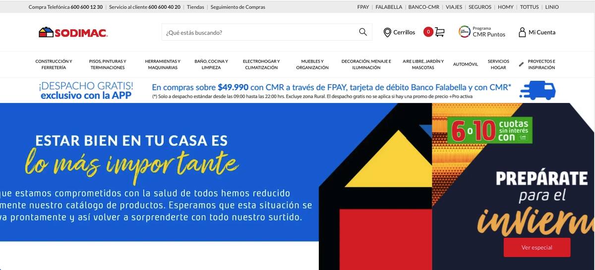 Por su lado, Falabella también tiene una ventana en la que precisa que redujo su catálogo de artículos debido a la restricción de venta de productos no esenciales.