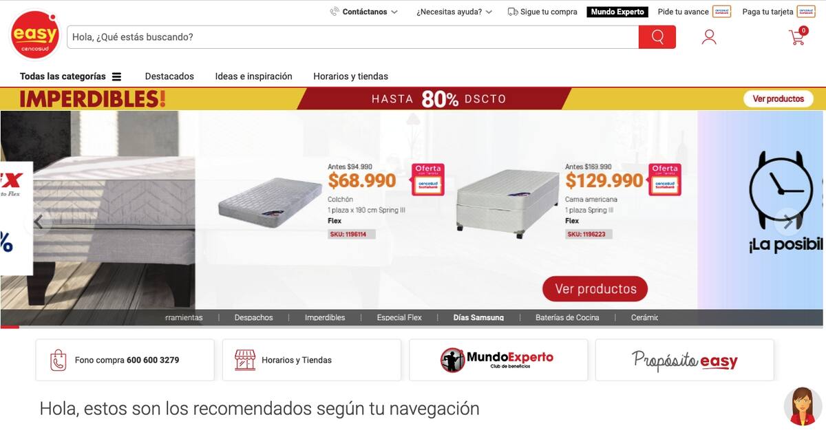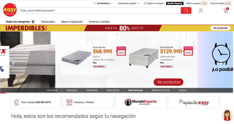 No obstante, Easy que también pertenece a Cencosud, no tiene ninguna advertencia en ese sentido para los clientes que visitan su sitio web con intención de comprar.