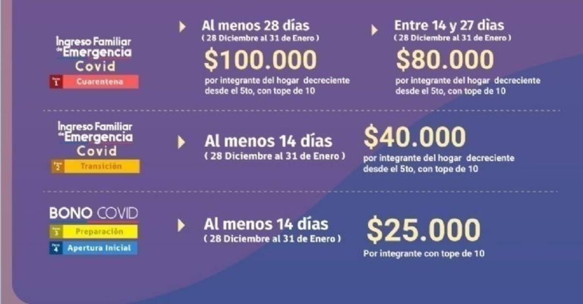 Cabe recordar que en esta oportunidad, tanto el IFE como el Bono COVID tendrán un incremento en su cobertura, ya que el 80% de la población del país se encuentra bajo Fase 1 o Cuarentena, requisito fundamental para la obtención de los beneficios.