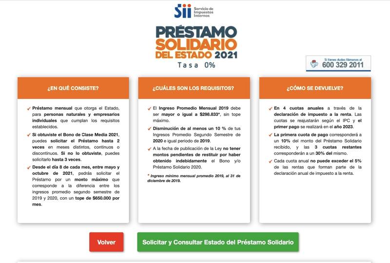 El Préstamo Solidario puede ser solicitado hasta tres veces dentro del plazo establecido, es decir, hasta el 31 de octubre de 2021. Sin embargo, aquellas personas que solicitaron el Bono Clase Media, sólo podrán hacerlo en dos ocasiones.