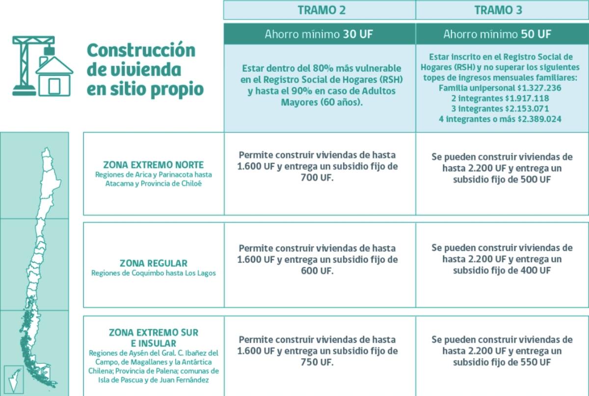 Cabe señalar que los interesados deberán contar con un ahorro mínimo registrado hasta el 30 de abril, quienes podrán construir o adquirir una vivienda nueva o usada hasta 1.100, 1.600 o 2.200 UF, dependiendo del tramo al que se postule. En el caso de la zona norte y extremo sur del país este valor aumenta hasta las 2.600 UF.