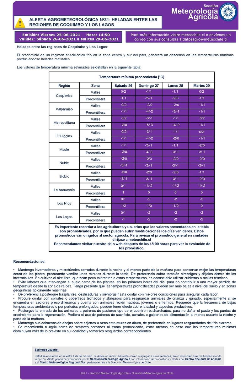 Por lo anterior, se recomienda tomar todas las precauciones respectivas a toda la ciudadanía y especialmente a quienes se desempeñen en el rubro de la agricultura.