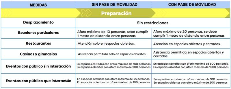 Entre las consideración a este nuevo Plan Paso a Paso se mantienen las fases de Cuarentena, Transición, Preparación y Apertura Inicial. Aunque ahora restaurantes, gimnasios, comercio, entre otros, y usuarios portadores del pase de movilidad recibirán gran parte de los beneficios.