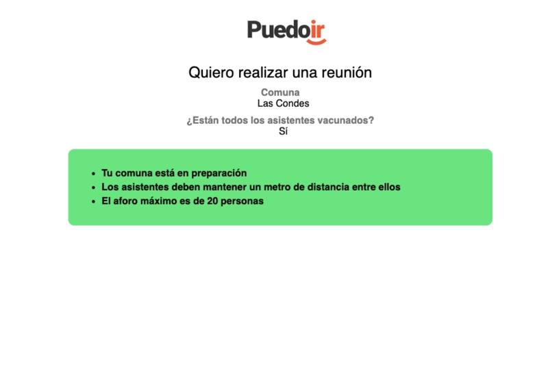 Según la alternativa que elijas, el sistema consulta tu comuna, si habrá más personas, si éstas están vacunadas, etc., y conforme a esos datos, despliega si de acuerdo a tu fase del Plan Paso a Paso, estás habilitado para realizar cualquiera de las acciones descritas.