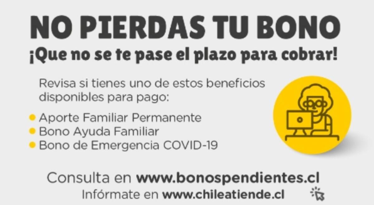 Apuntando a estos casos, desde Chile Atiende iniciaron la campaña "No pierdas tu Bono", la cual se trata de una plataforma con un buscador mediante el cual, sólo con el RUT y la fecha de nacimiento, se podrá conocer si corresponde o no alguno de los pagos.