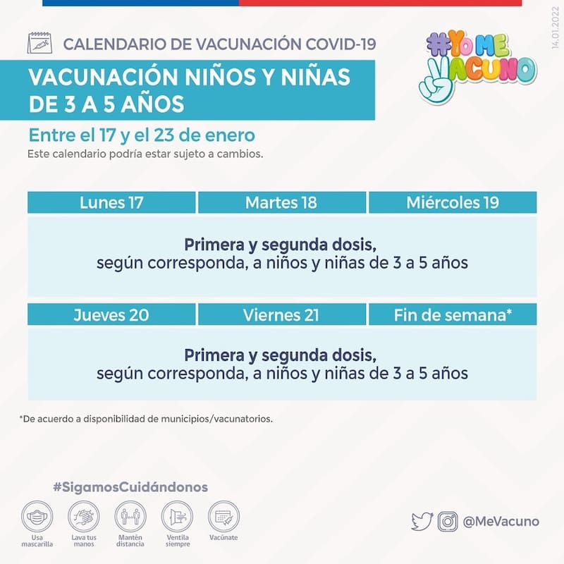 - Para hoy domingo 23 de enero se podrán vacunar niños y niñas de 3 a 5 años.