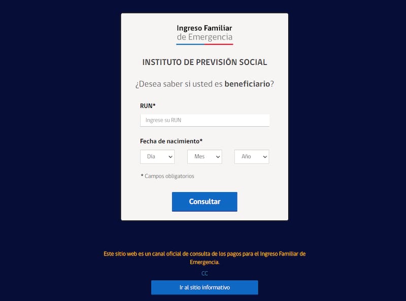 Por esta razón, para que no pierdan el aporte, todas las personas pueden revisar en la página oficial del IFE Universal, donde deberán escribir su RUT y fecha de nacimiento.