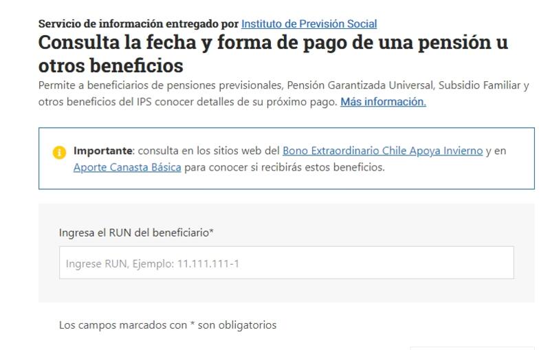 Para usarla solo debes ingresar tu RUT y el sistema te informará cuáles son los beneficios del IPS que te corresponde recibir y si no has cobrado alguno.