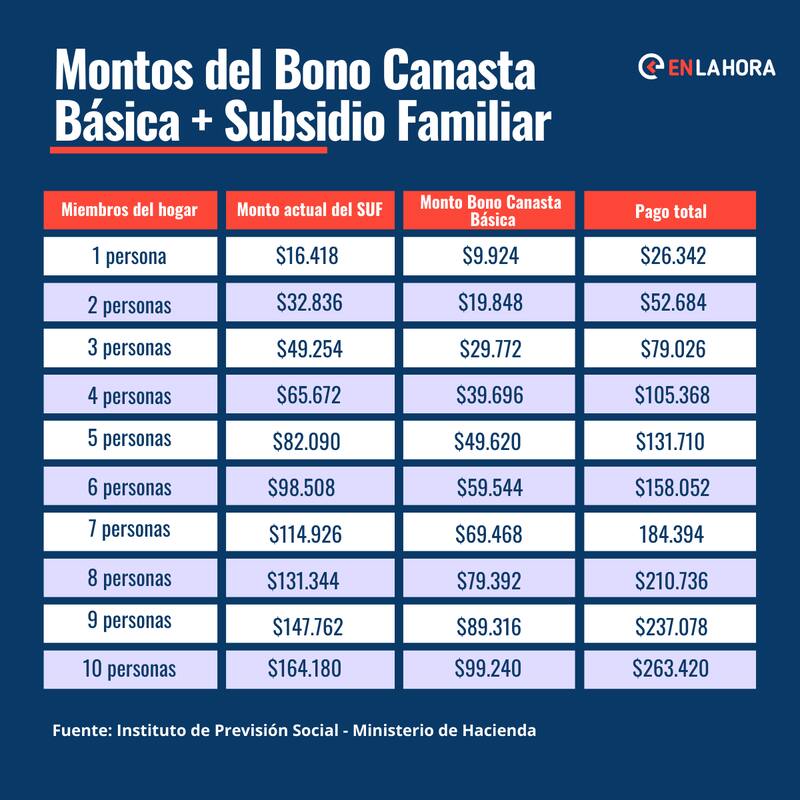 Los últimos días de octubre se realizará un pago de $9.924 por causante (carga familiar). Este monto corresponde al fijado para septiembre, ya que el Bono Canasta Básica se paga con desfase.