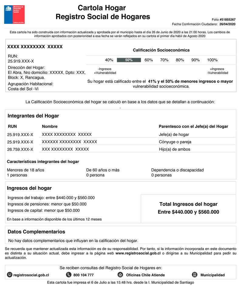 ¿Qué contiene la cartola del Registro Social de Hogares?