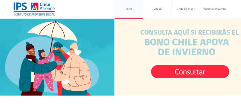Este beneficio del Estado está a cargo del Instituto de Previsión Social (IPS), quien creó la página web bonoinviernochileapoya.cl, donde puedes conocer si eres beneficiario o beneficiaria ingresando tu RUT y fecha de nacimiento.
