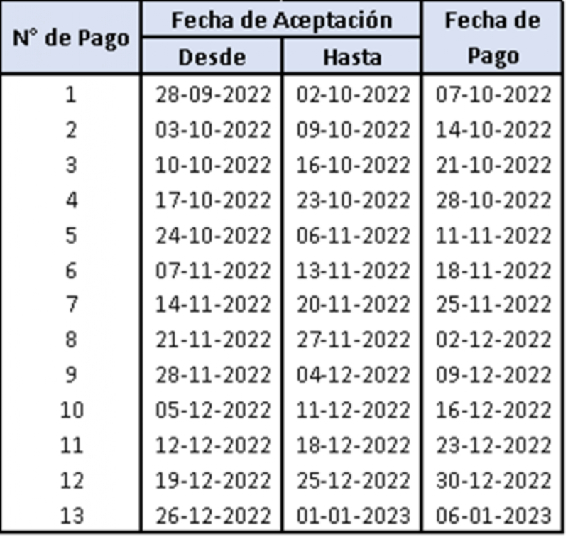 La fecha de pago variará según la fecha en la que hayas aceptado la propuesta de devolución. Dicho esto, el calendario de pago es el siguiente: