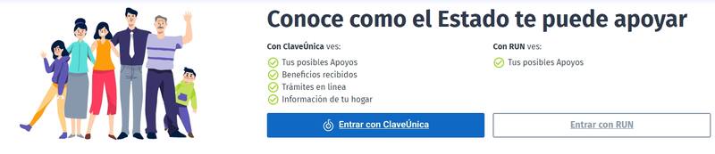 Además, en el sitio web podrás hallar dos opciones para ingresar: a través de Clave Única o con tu RUT. Si decides entrar con la primera, podrás revisar posibles aportes personalizados, así como los que ya has recibido, tales como pagos IFE o bonos, realizar algunos trámites en línea y ver la información de tu hogar.