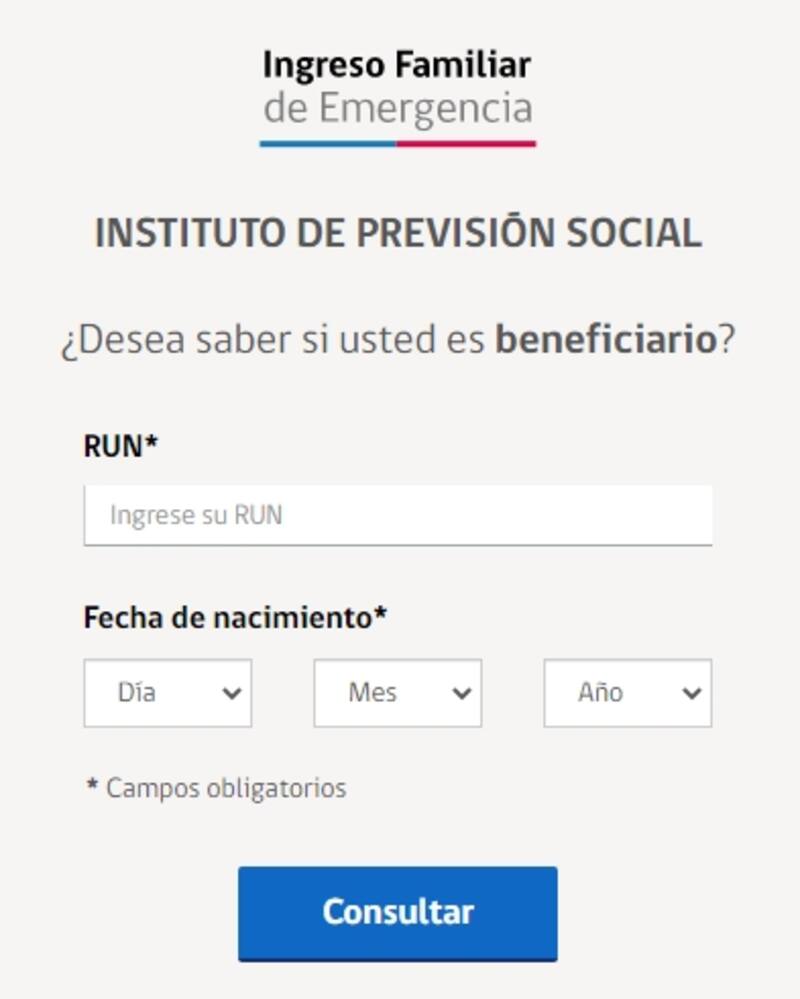 Solo debes ingresar tu RUT y fecha de nacimiento del titular representante del grupo familiar. Aquí, la plataforma desplegará el detalle de los pagos recibidos y si hay alguno que aún no ha sido retirado.