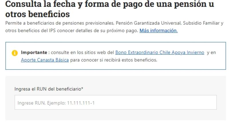 El Instituto de Previsión Social (IPS) en conjunto con ChileAtiende cuentan con una plataforma para consultar por la fecha y forma de pago de la Pensión Garantizada Universal.
