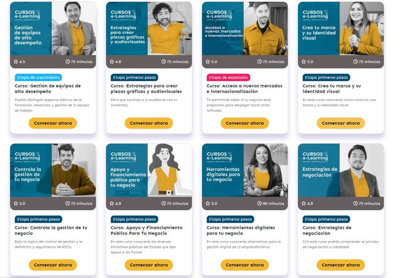 Actualmente existen más de 30 cursos gratuitos en Pymes en Línea. Algunos de estos son:
