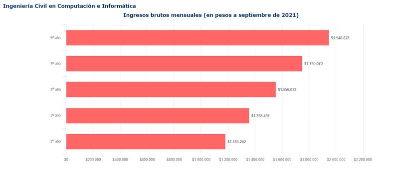 Según MiFuturo, las carreras relacionadas a la informáticas mejor pagadas, al primer año de titulación con datos tomados hasta septiembre de 2021, son: