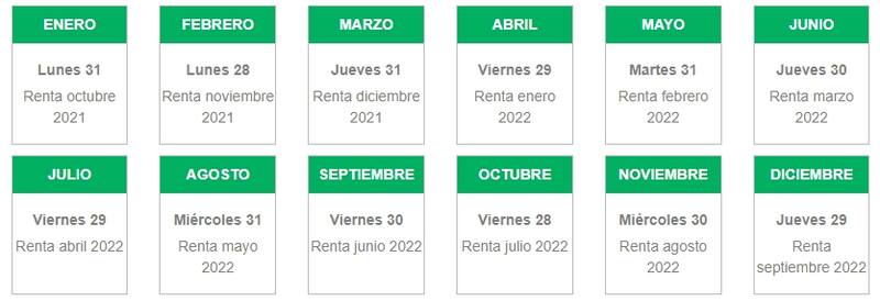 Revisa a continuación las fechas de los próximos pagos mensuales: