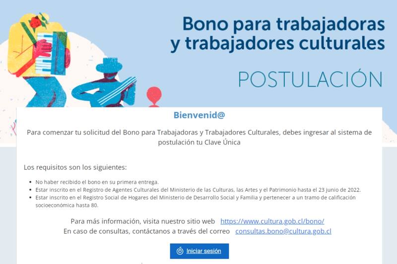 Si cumples con las condiciones y quieres acceder al beneficio en este segundo llamado, solo debes ingresar al sitio del Bono Trabajadores de la Cultura e ir a donde dice "Postula al Bono".